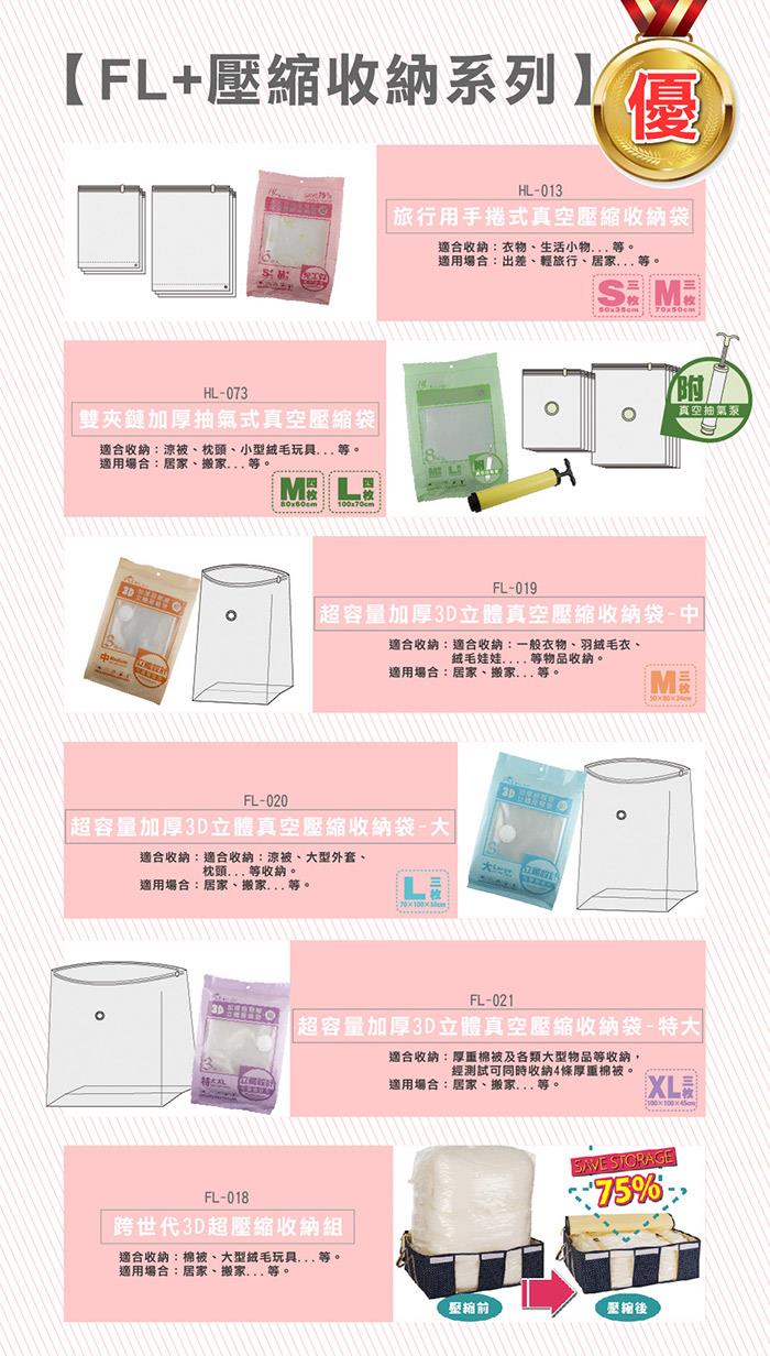 ●超容量加厚3D立體真空壓縮收納袋系列計有3種尺寸: