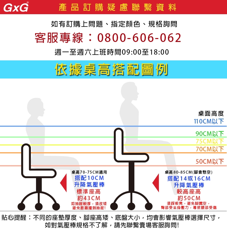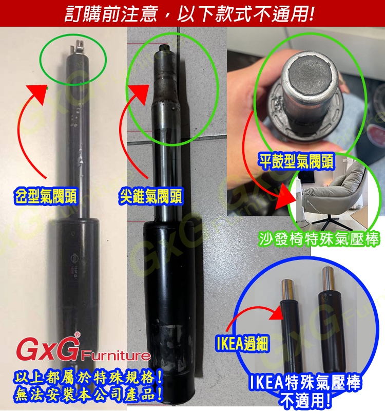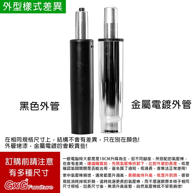 8.座面高度決定於氣壓棒使用長短,請選擇適當高度,若需求較高高度,建議加長氣壓棒尺寸,避免高度不夠,將氣壓棒升到最高,容易造成氣壓棒損壞。