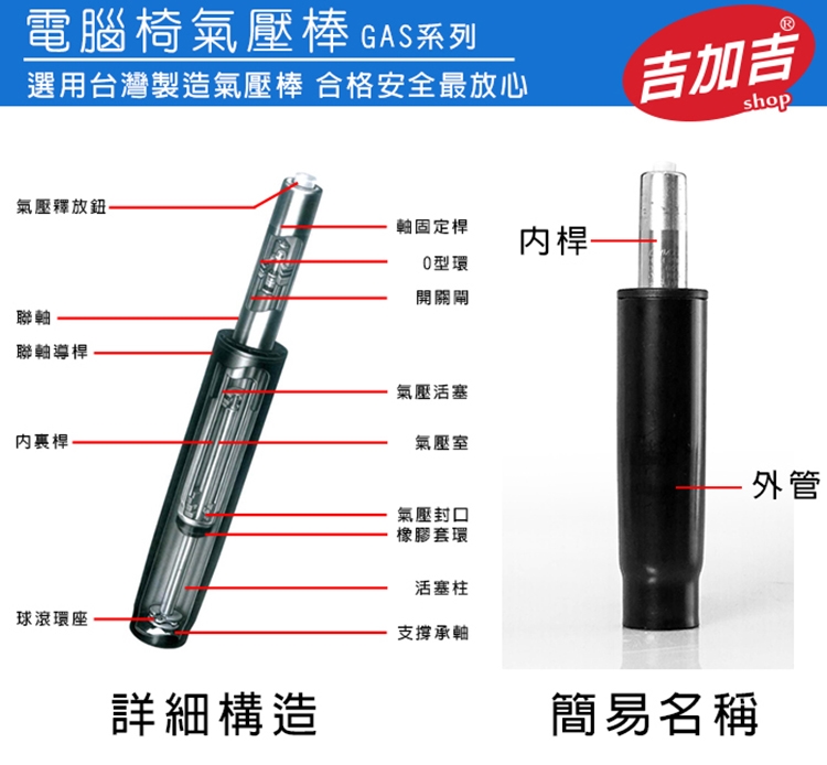 認識電腦椅配件『氣壓棒 Gas Lift Cylinder』