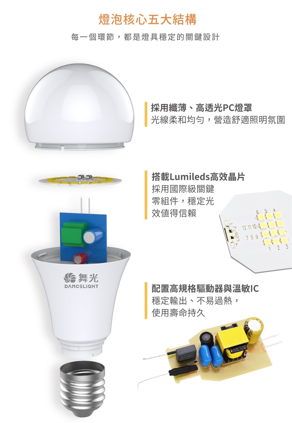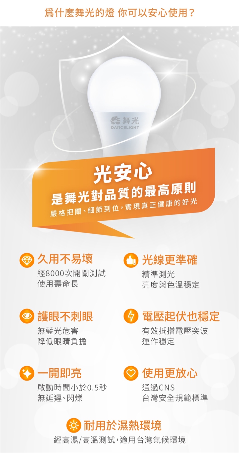 6. 長壽命15000 小時,一顆LED 球泡可抵3 顆以上省電燈泡