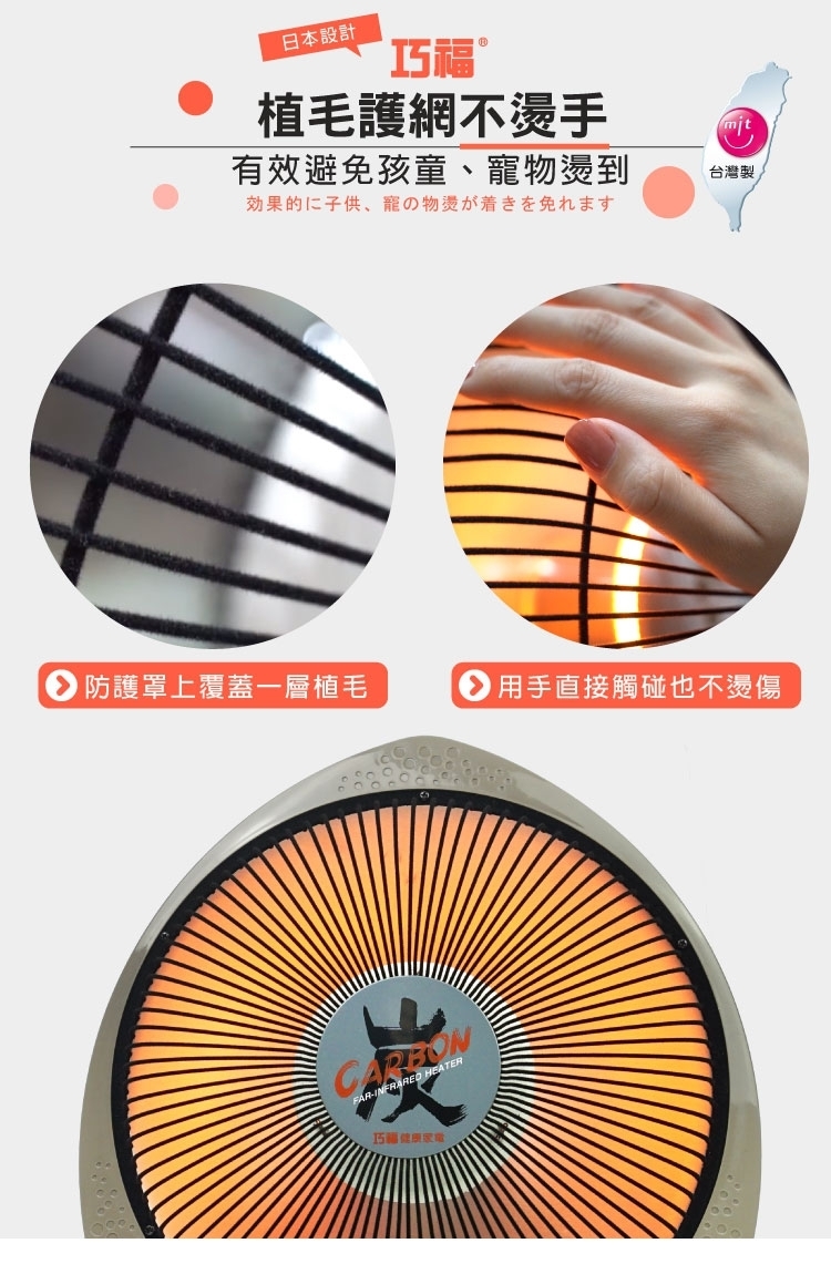 ◆ 採用碳素遠紅外線光,只產生熱輻射,無磁波及紫外線