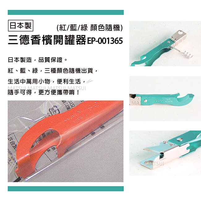 日本製造 三德香檳開罐器(紅/藍/綠 顏色隨機) EP-001365