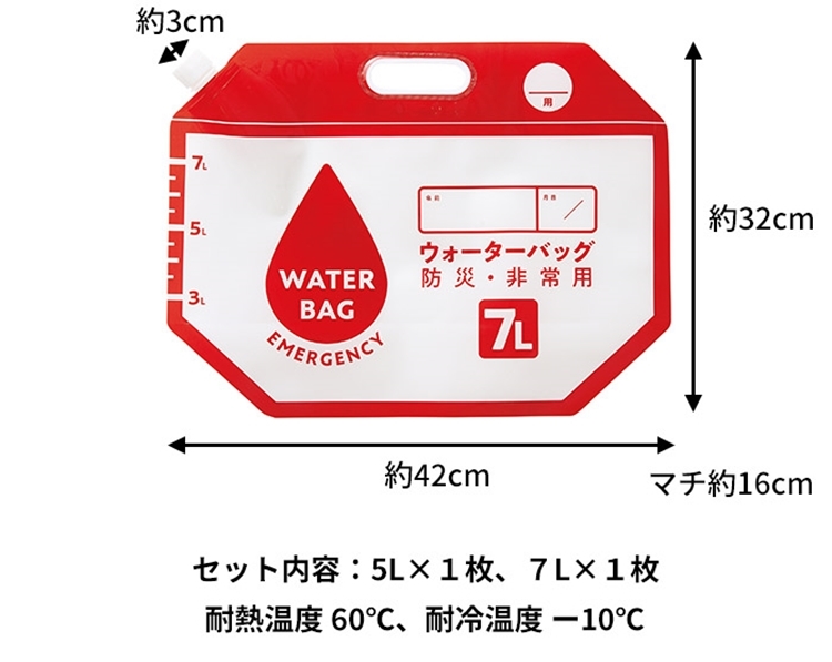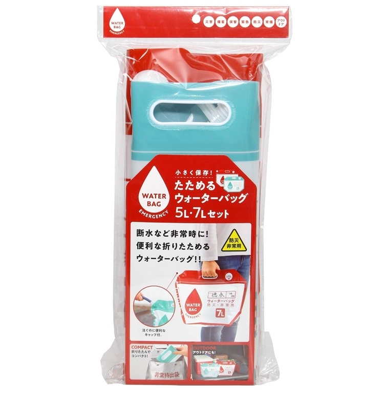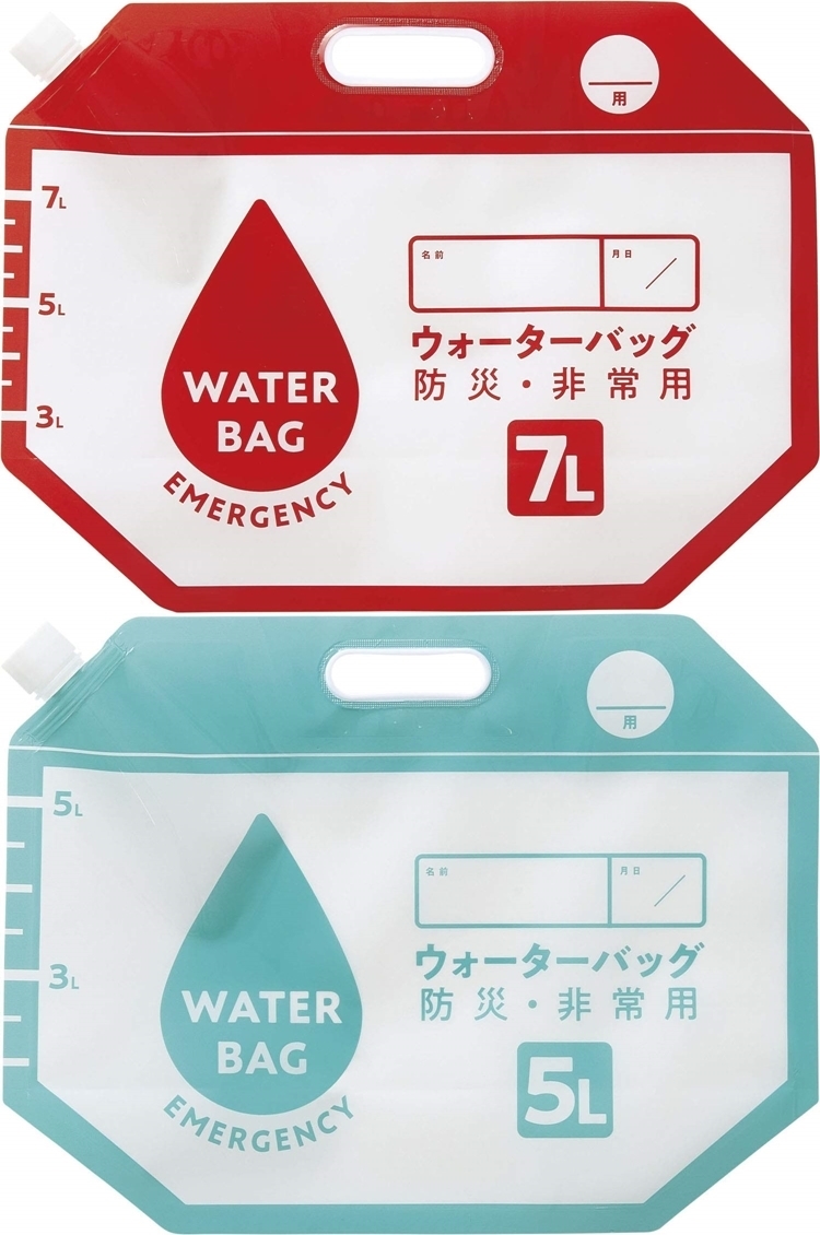 ●【品名】日本COGIT緊急難儲水袋907340防災手提水袋(2入即5L、7L各一且可摺疊)適露營用品戶外旅行
