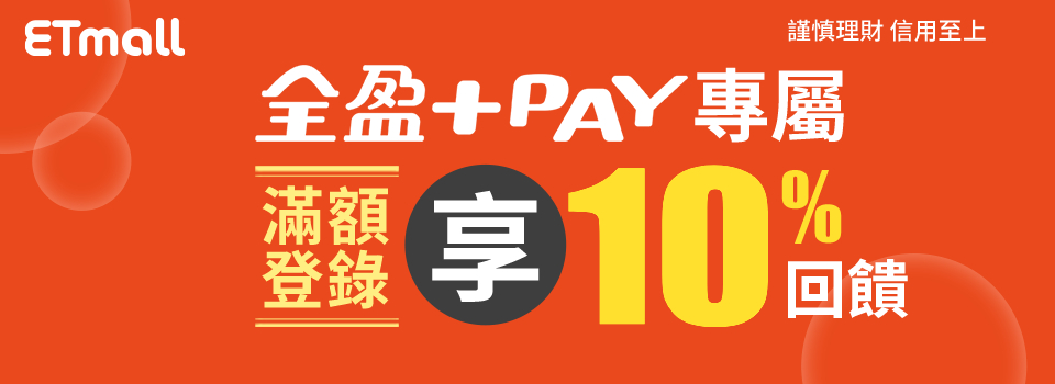 - 消費金額依實際扣款金額(不含運費、折扣碼、購物金或其他折抵金額)為準,活動須使用全盈+PAY付款完成並達單筆消費門檻,並於登錄期間在指定網頁完成登錄,符合活動資格之會員始可享有回饋;若因取消訂單、辦理退貨、退款導致未達單筆消費門檻,全盈支付將逕行取消回饋資格。