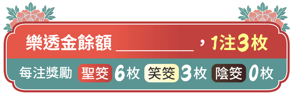 - 步驟三:確認後點擊「擲筊」,系統即會扣除本局所需樂透金。