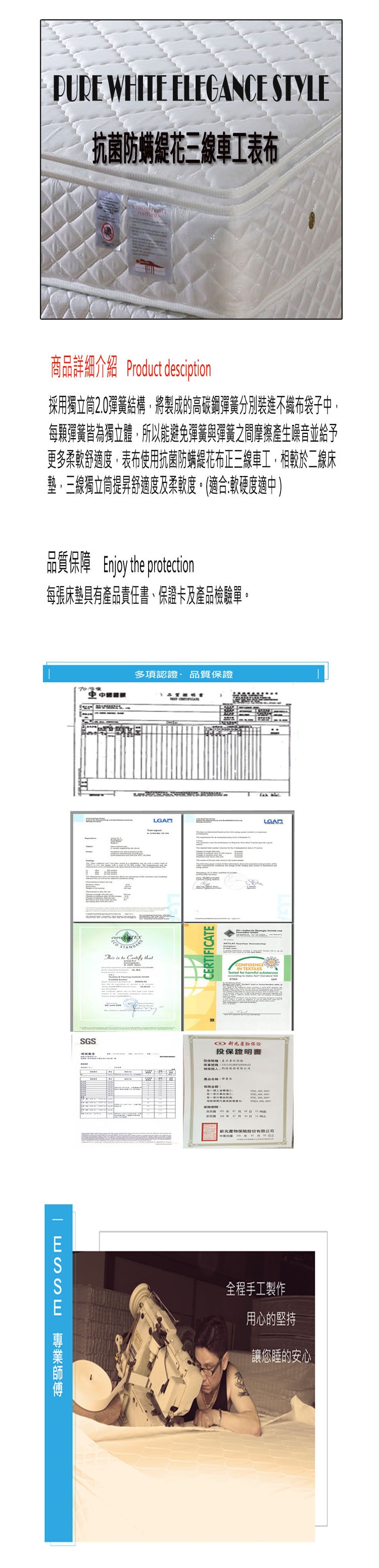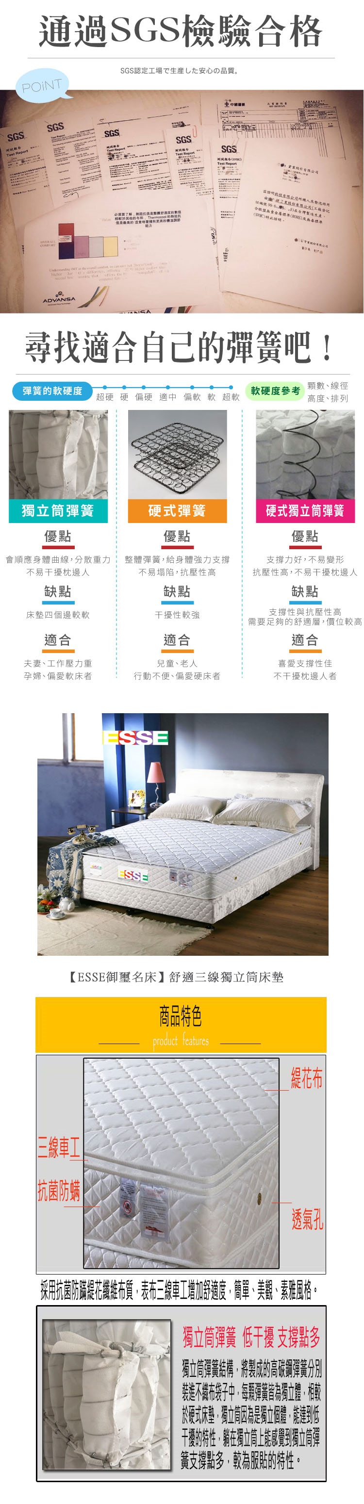 【ESSE御璽名床】舒適三線獨立筒床墊6x6.2尺 -雙人加大