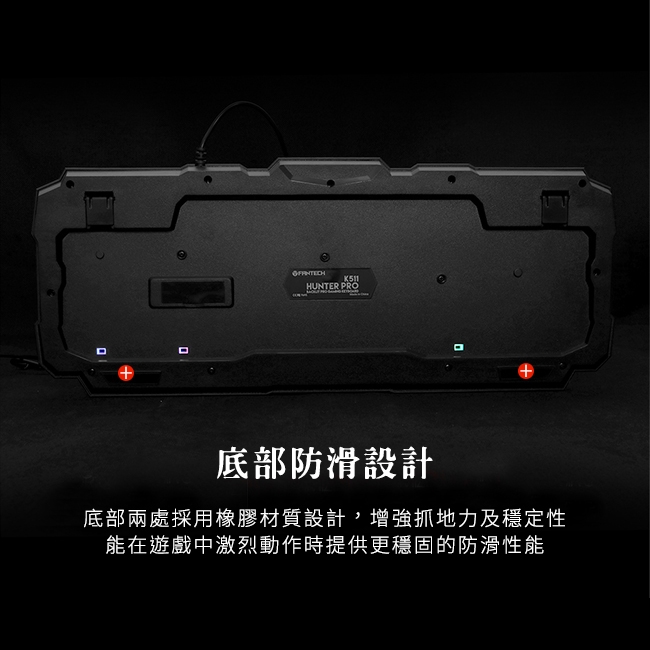 底部兩處採用橡膠材質的防滑設計,增強抓地力並在遊戲中激烈動作時提供更穩固的防滑性能。