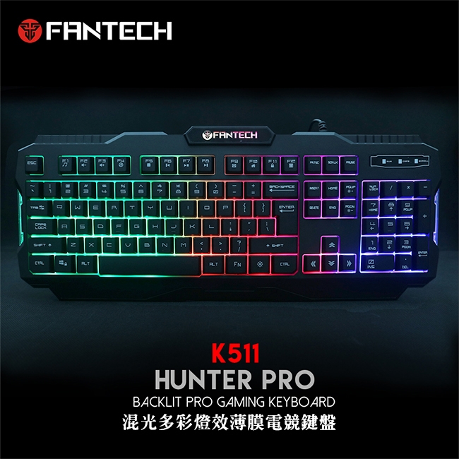 【FANTECH K511 混光多彩燈效薄膜電競鍵盤】