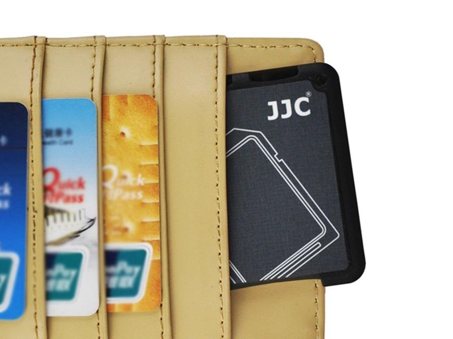 ●【品名JJC超薄名片型收納4張TF記憶卡即4張SD卡收納儲存盒MCH-SD4GR(共可保存4張SDSDHC或SDXC記憶卡)儲藏盒,可放口袋皮夾錢包