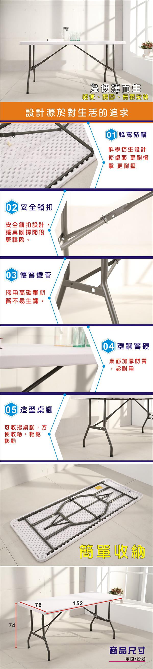 1.居家必備的折合桌152*76長桌面,可折桌腳易收納