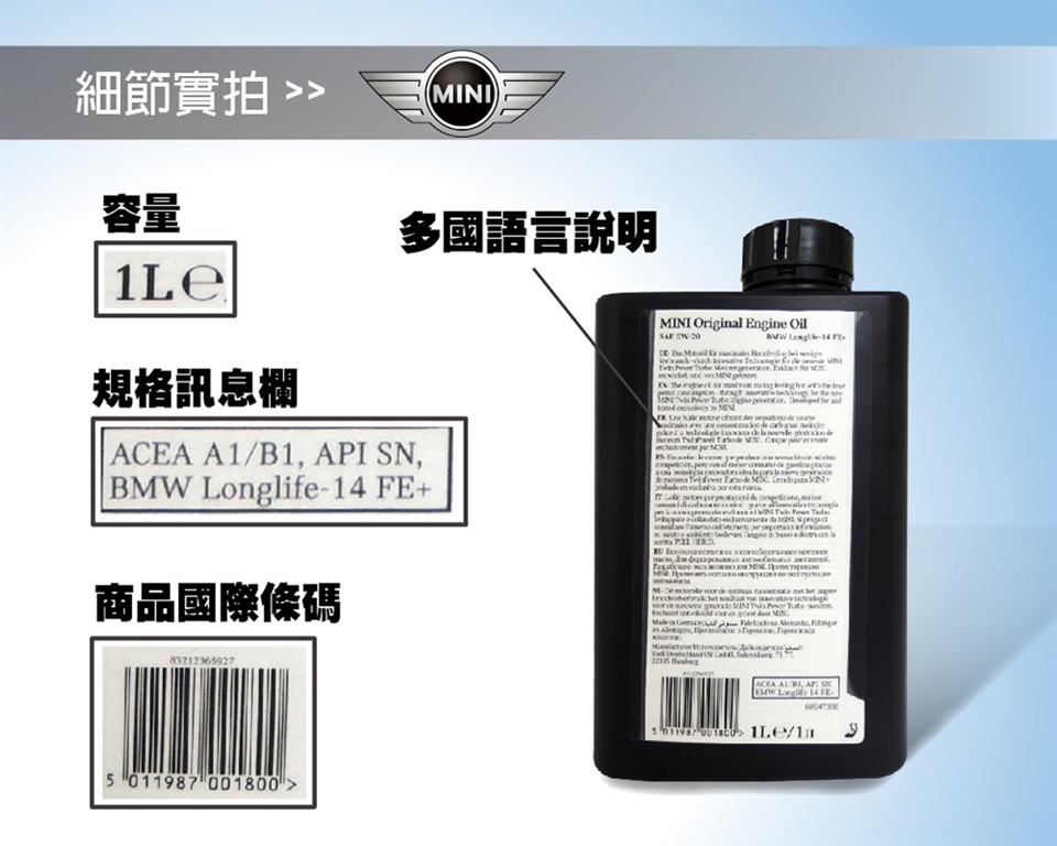 品名:MINI ORIGINAL ENGINE OIL 0W20