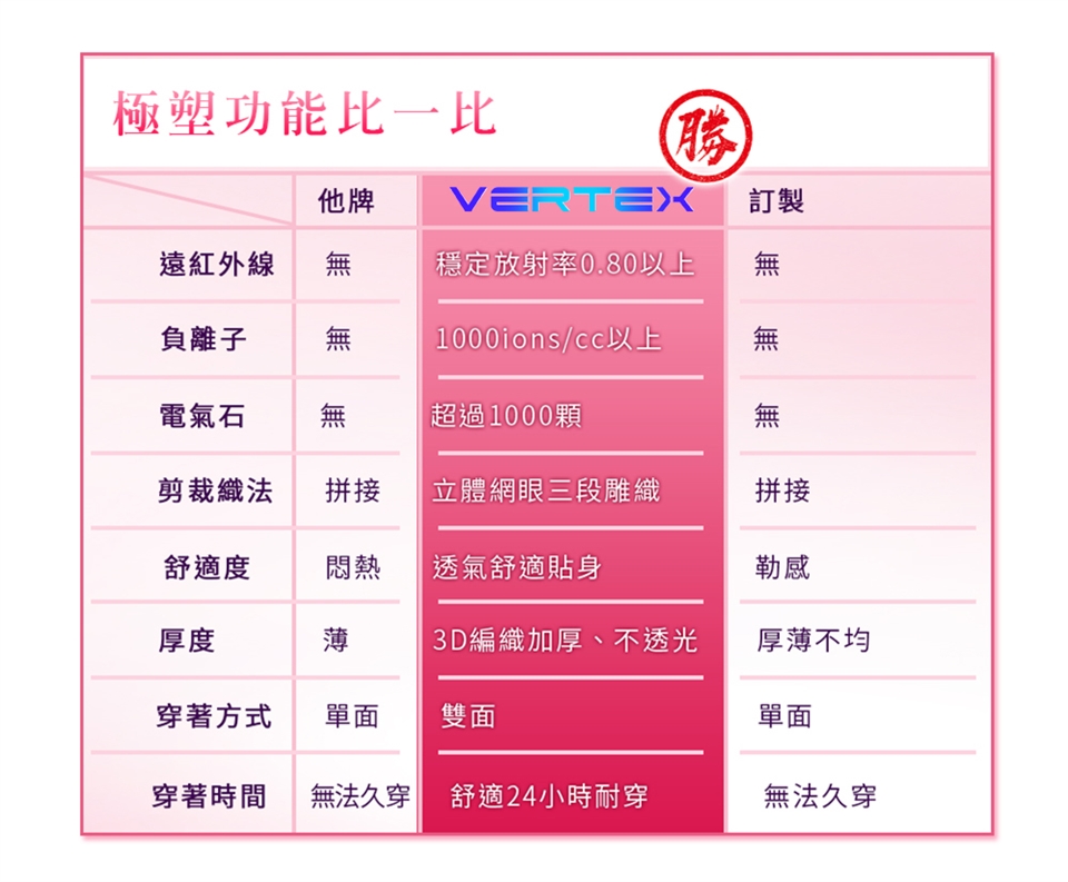 *目前坊間有出現VERTEX仿冒品,外觀與VERTEX很像,但材質&彈性差很大,
