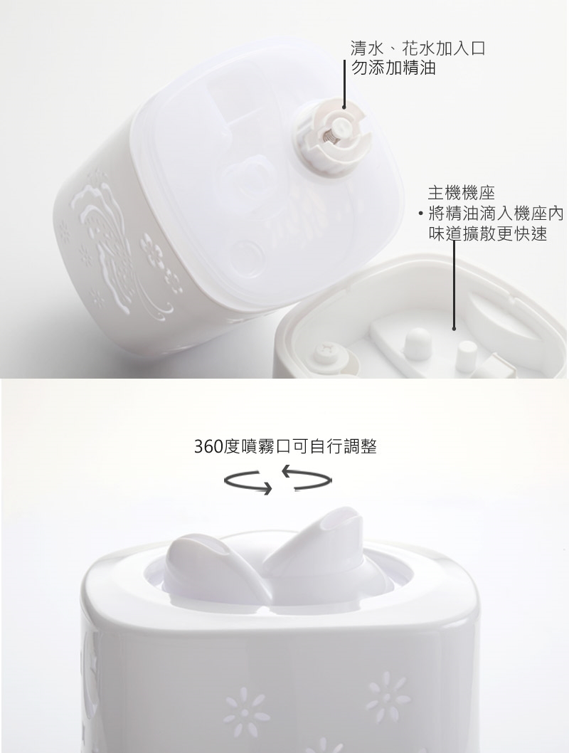 3.本產品裝水後可添加各類精油,純露.花水...等.