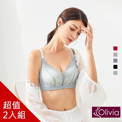 ★超值2入★Olivia 無鋼圈3D立體唯美蕾絲無縫內衣 2件組