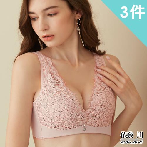 【enac 依奈川】前扣掌托愛戀花朵蕾絲無鋼圈內衣 3件組 (顏色隨機)