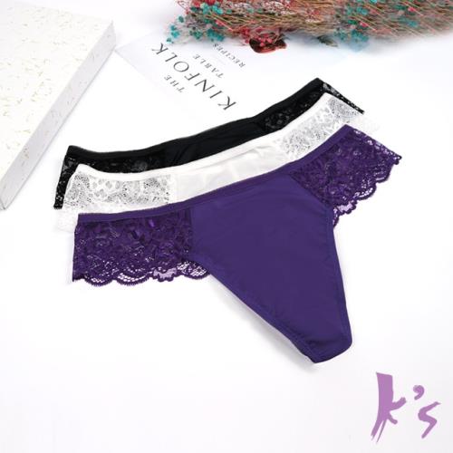 Ks凱恩絲 有氧蠶絲 鏤空蕾絲色丁字褲 (紫、黑、白色)