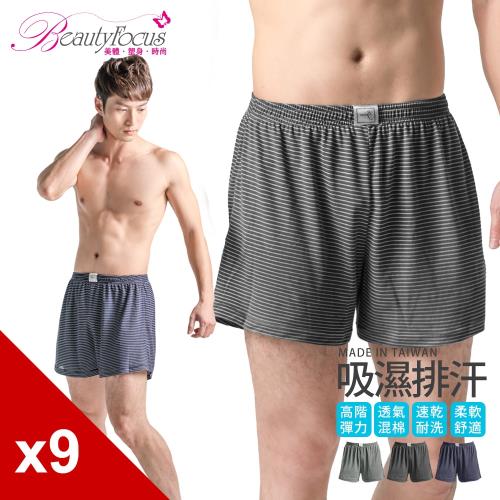 BeautyFocus (9件組)涼爽吸排棉條紋平口褲(3860)