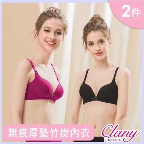 Clany可蘭霓 台灣製竹炭厚墊無鋼圈2+2件組 AB內衣褲 (顏色隨機出貨)