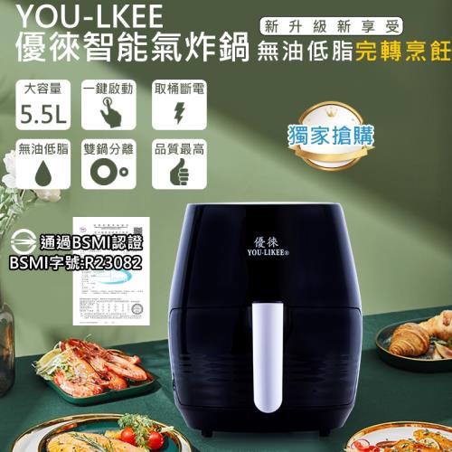 健康的新選擇!5.5L超大容量健康氣炸鍋,可調式控溫,熱旋風對流360度全方位加熱,保留住食物的原汁~不用高溫油炸也能有炸物的美味!內鍋不沾塗層,好清洗使用更安心~簡單烹飪,輕鬆上菜,是廚房必備神器!