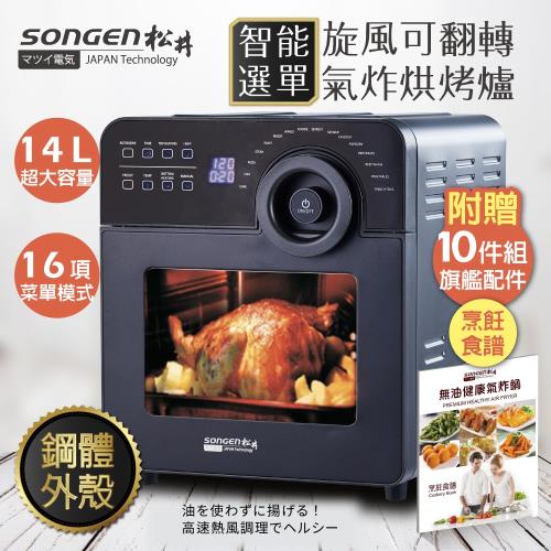 SONGEN まつい松井14L可旋轉氣炸鍋烘烤爐SG-1400AF(附贈炊具10件組+食譜一本)氣炸烤箱