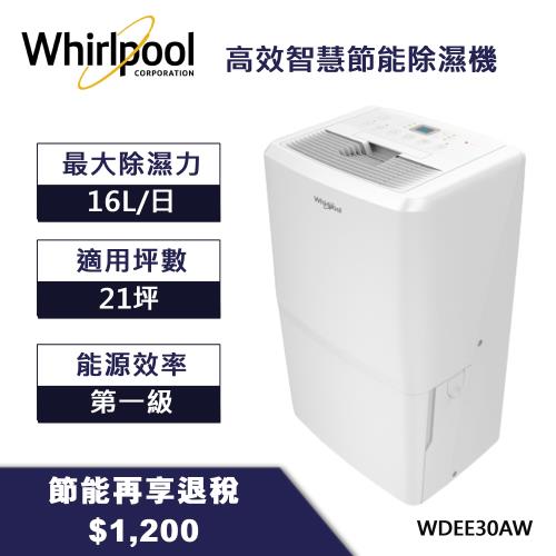 Whirlpool惠而浦 1級能效 16L智慧節能除濕機WDEE30AW(Y)-庫