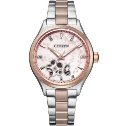CITIZEN Lady 粉紅櫻花鏤空機械女錶(PC1016-81D)34mm