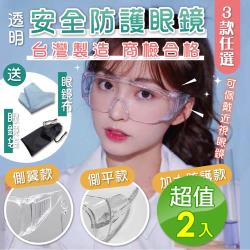 台灣製透明抗UV安全護目眼鏡2組(附眼鏡袋+眼鏡布)