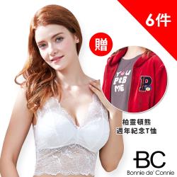 ★6+1件組★【法國BC】波妮可妮限定款-百年手工蕾絲無鋼圈內衣6件組(加贈柏靈頓熊紀念T恤)
