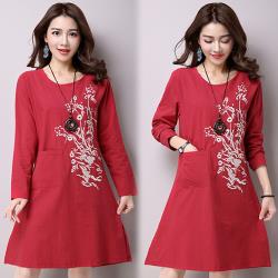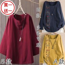 (買一送一)麗莎熊 LisaBear 大尺碼春夏薄款刺繡復古長袖上衣 M~5XL 兩款多色可選