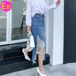 【Abbie】牛仔裙系列-個性抽鬚不規則牛仔裙(現貨熱銷中/售完不補)