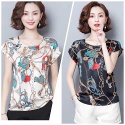 A3 (二件組)緞面鎖鏈印花上衣(M~XXL)-預購