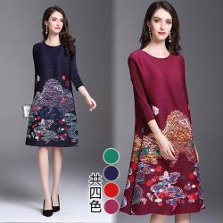 歐風KEITH-WILL (預購) 華麗端莊山水壓褶洋裝
