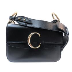【CHLOE】C Bag 滑面牛皮拚麂皮手提肩背二用包-中(黑)
