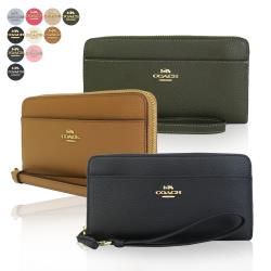 COACH 金屬馬車LOGO 素面荔枝紋牛皮手掛式長夾(多色選)