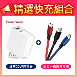20W PD 2-port 智能充電器+三色元素 3.0A 三合一編織數據線 [快充組合]