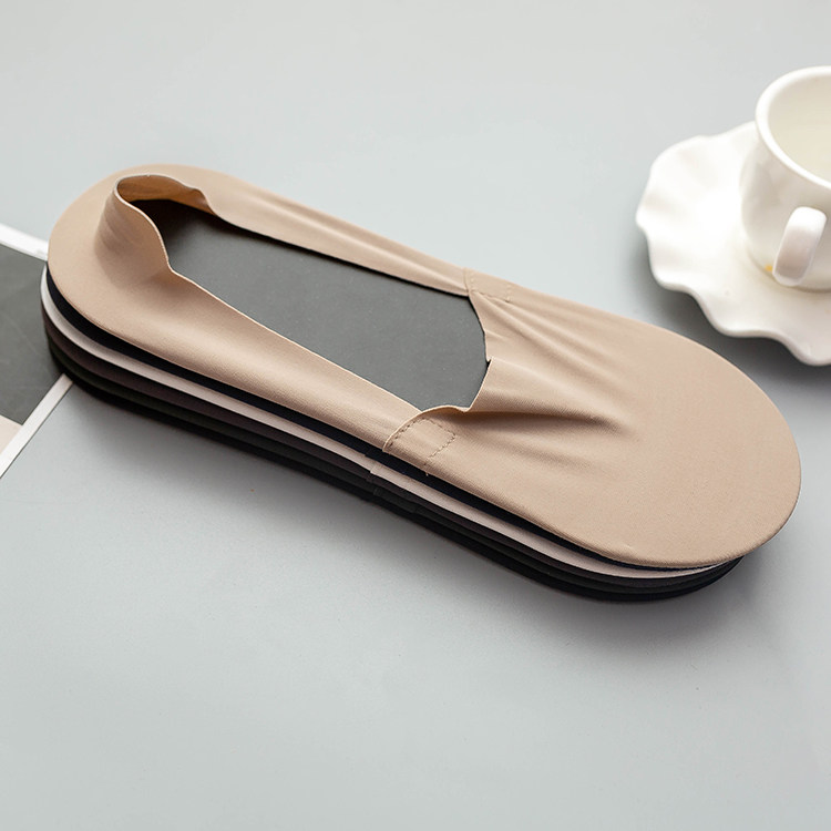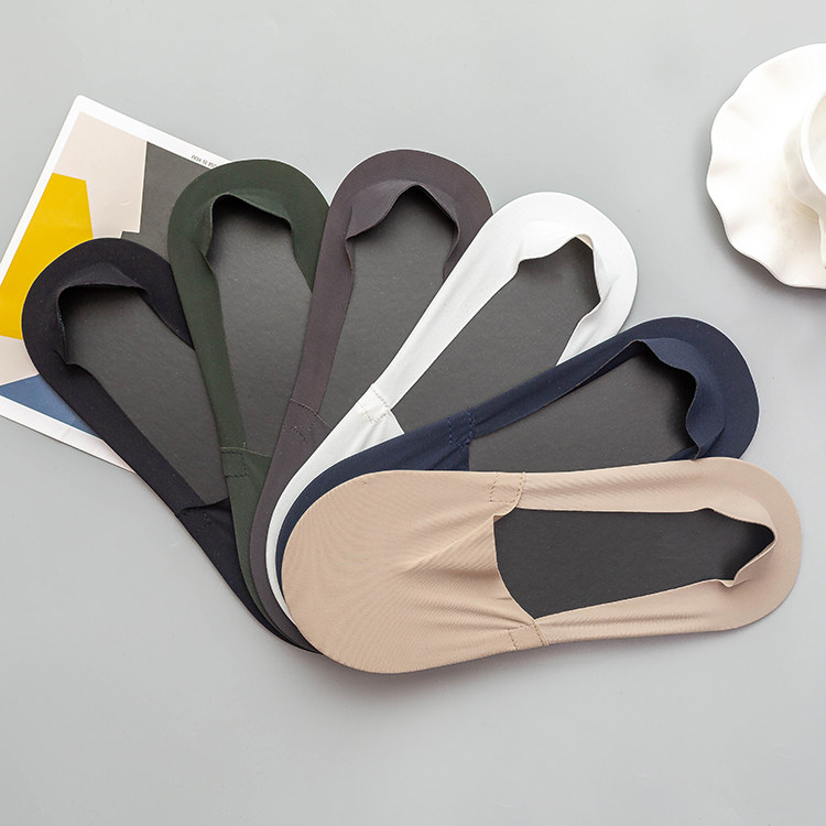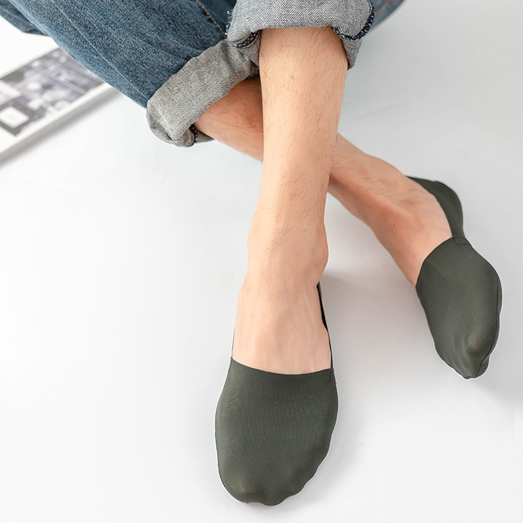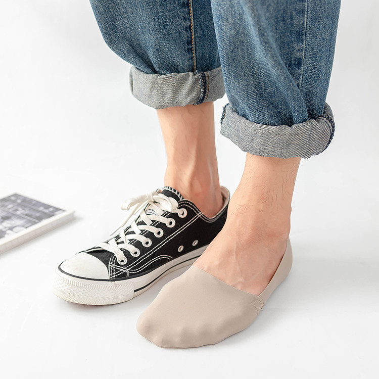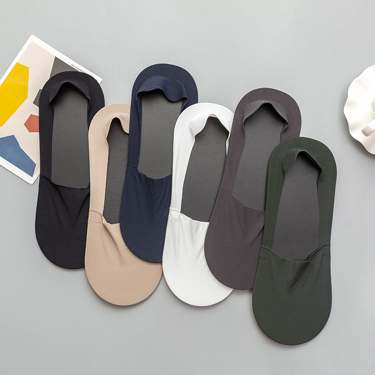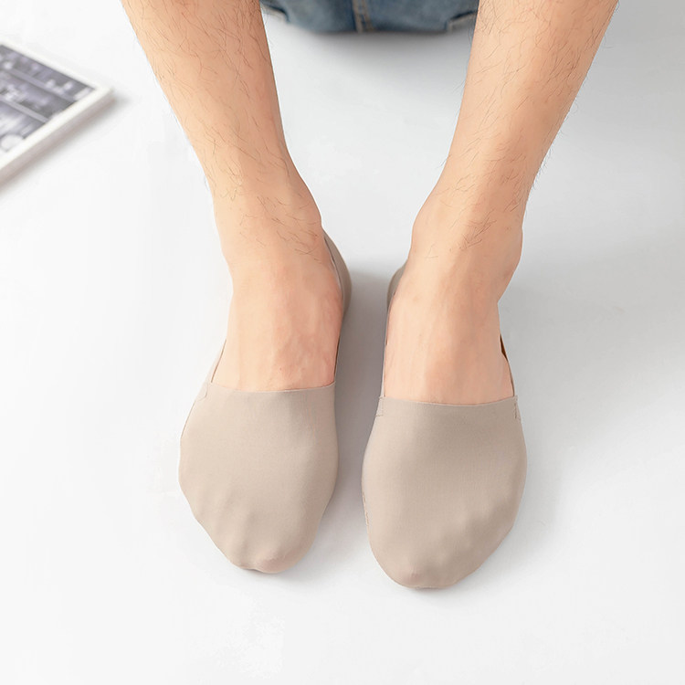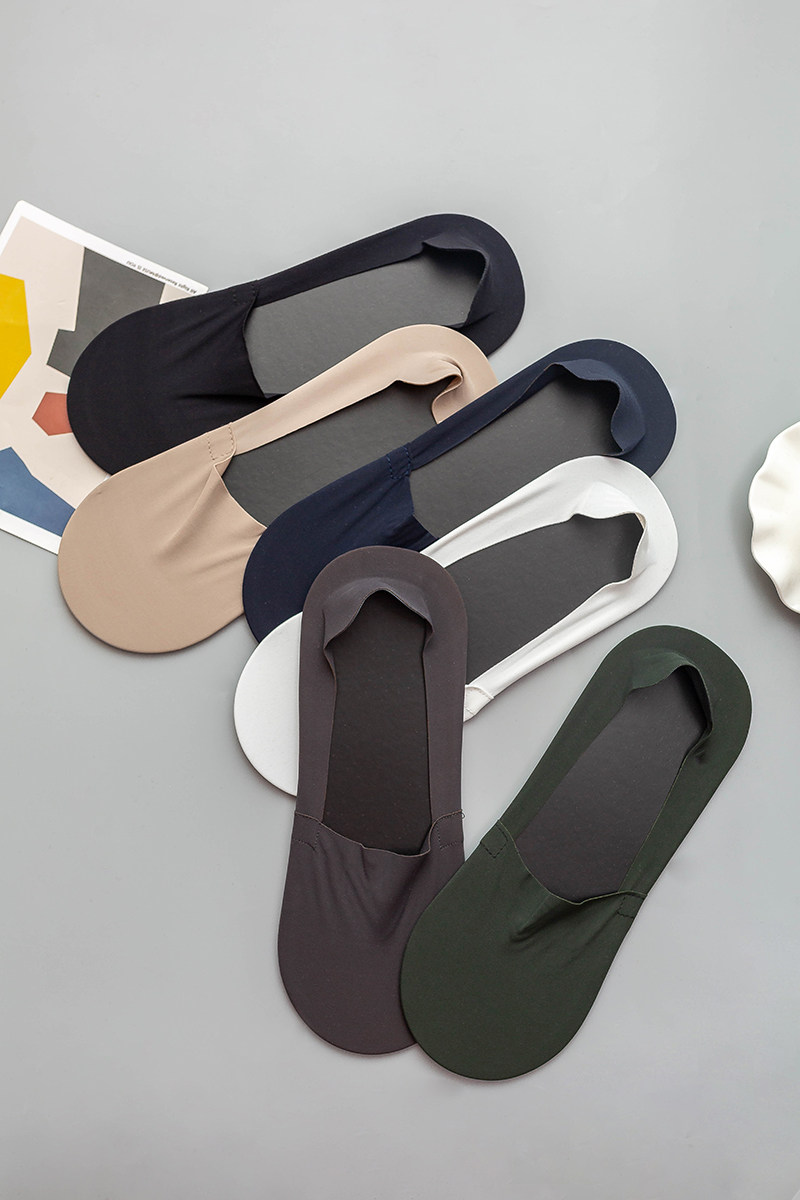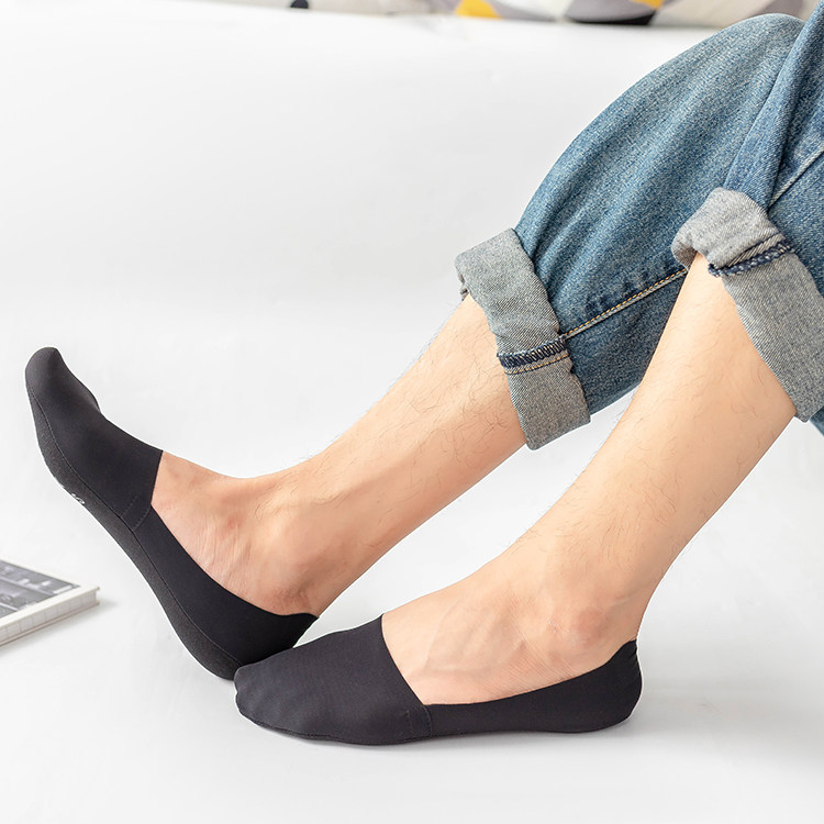 冰絲棉男士隱形襪,腳觸感帶有絲綢之感,清涼柔軟,貼腳,手感柔軟,襪底文字硅膠,高彈精紡布料工藝,后跟帶有硅膠,彈性佳。男士均碼。