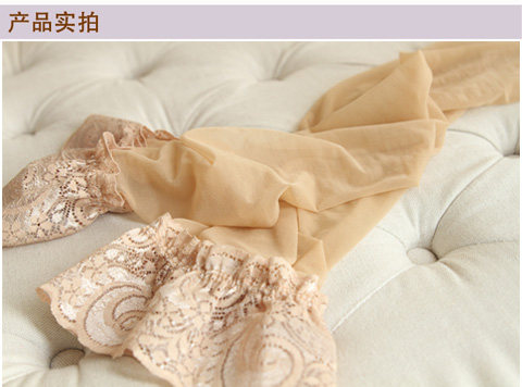 蕾絲唯美花邊、襪口是加寬的 加長的蕾絲邊是加硅膠的穿一整天也不會往下滑