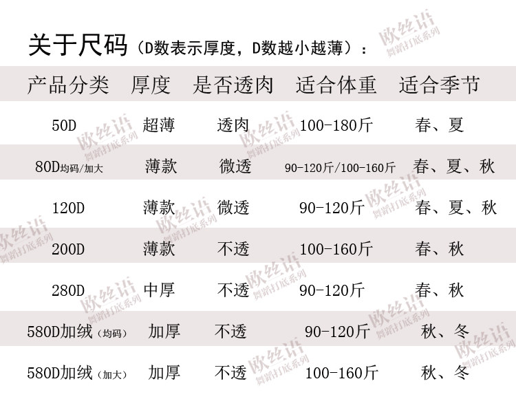 D數表示衣服的厚薄,D數越小衣服越薄。