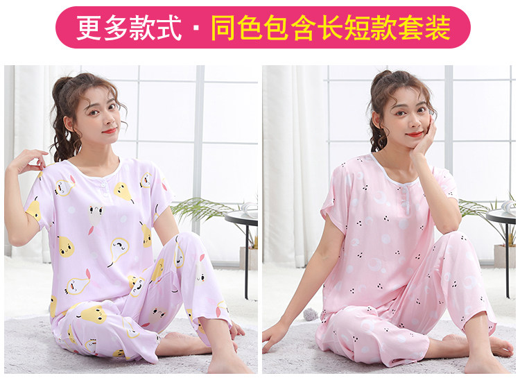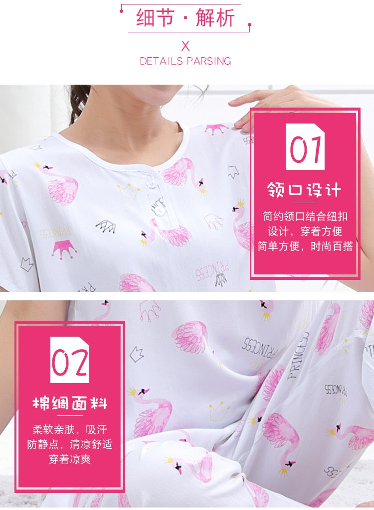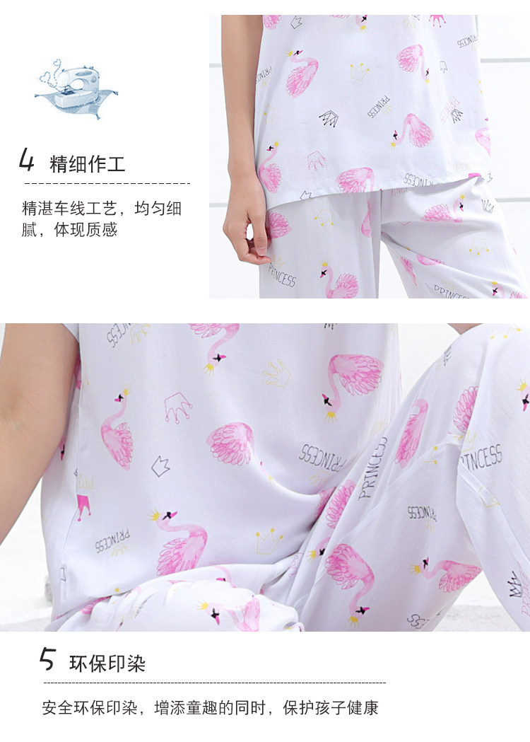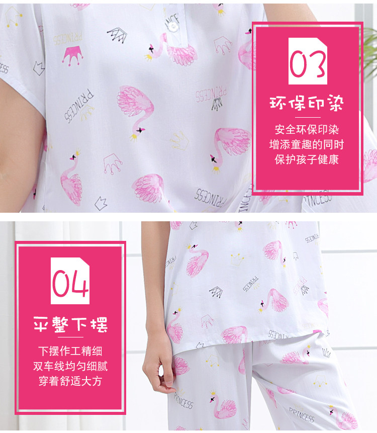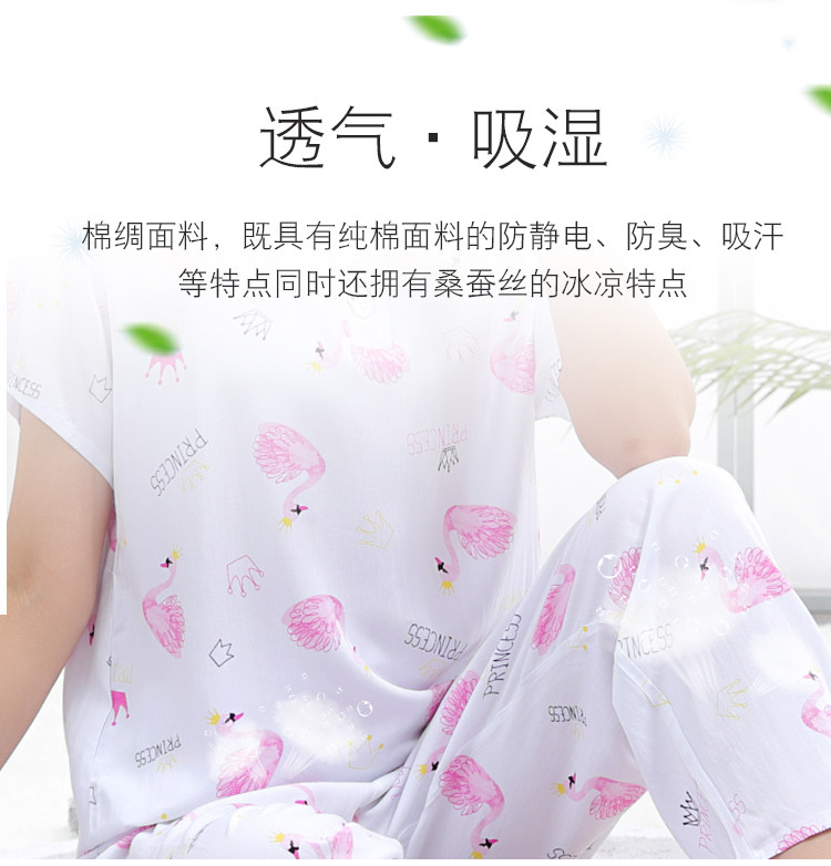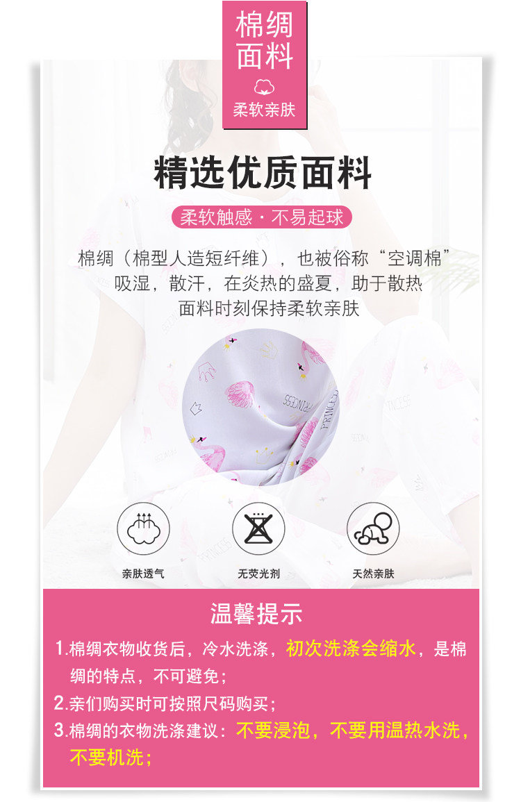 夏少女大童棉綢睡衣短袖長褲高初中學生人造棉家居空調服12-15歲