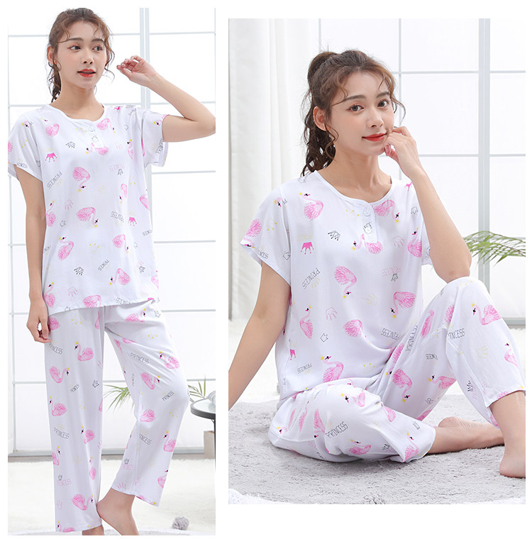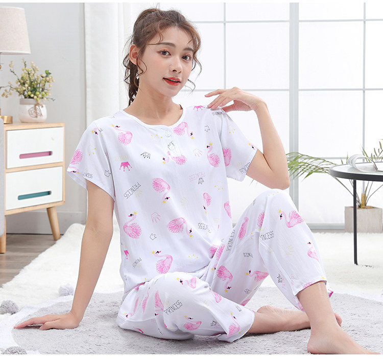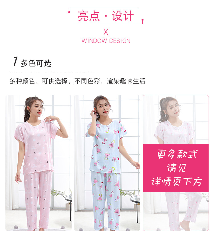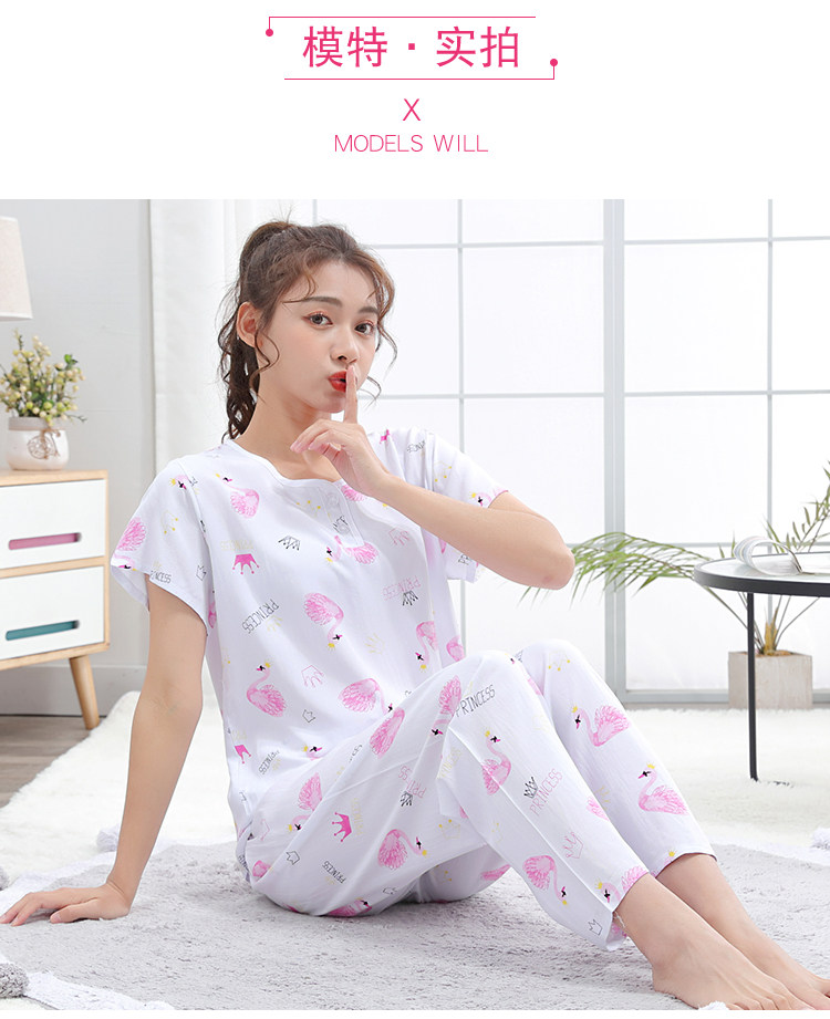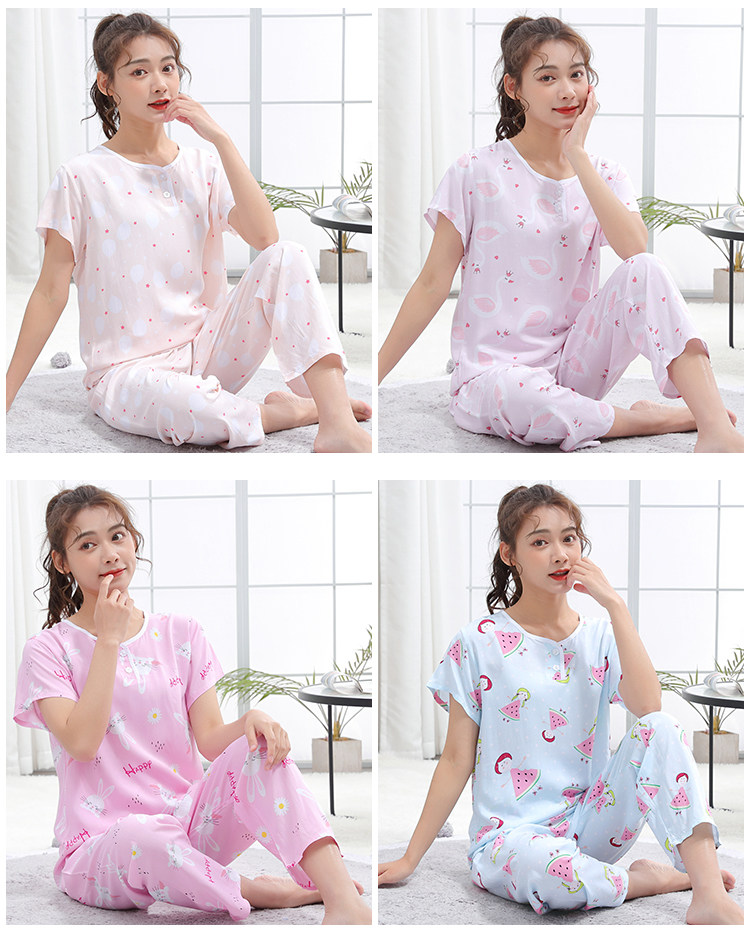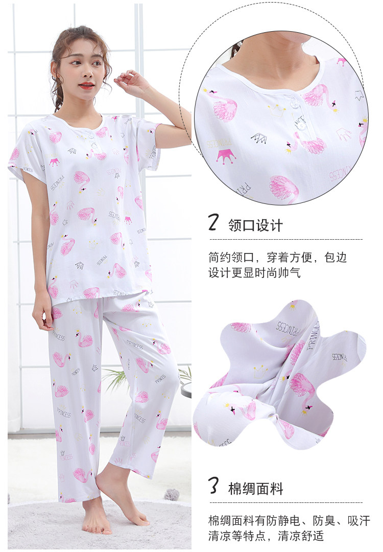 夏少女大童棉綢睡衣短袖長褲高初中學生人造棉家居空調服12-15歲
