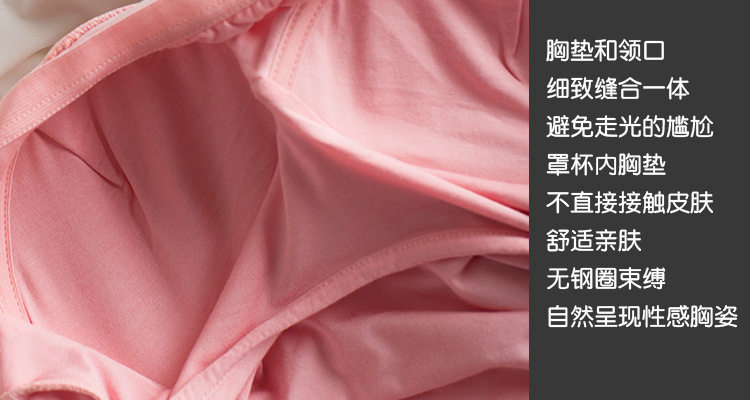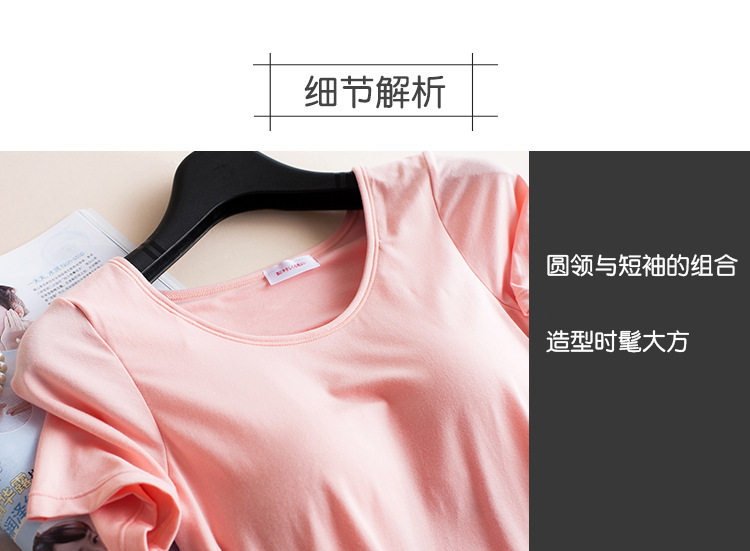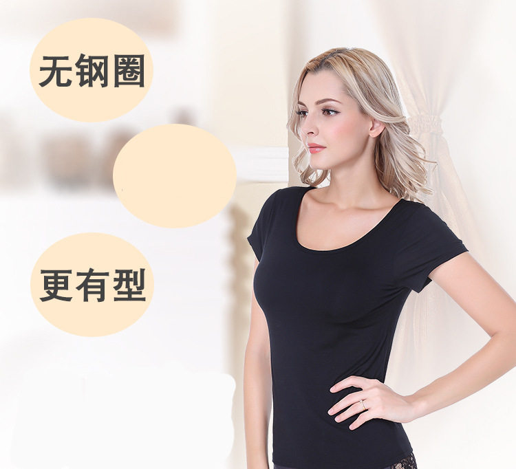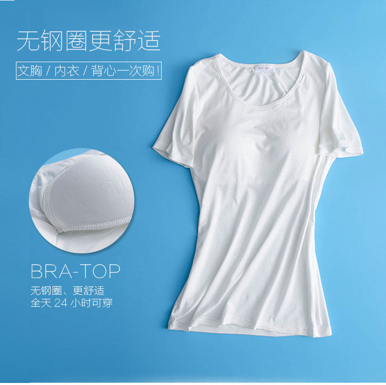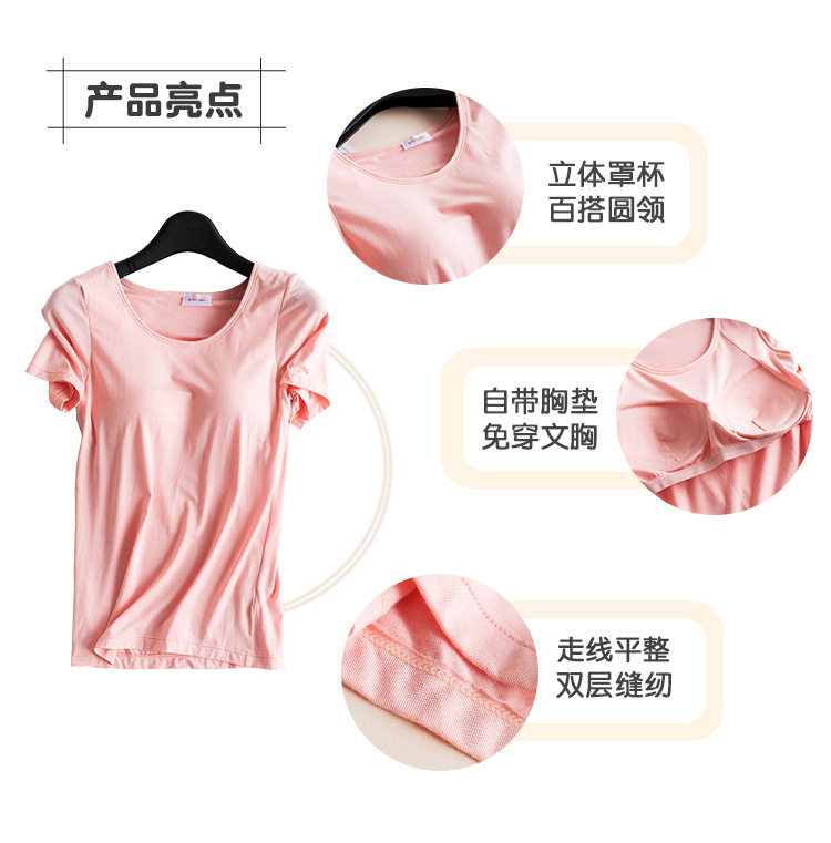 很棒很舒服的一款免穿文胸T恤,簡約百搭,不挑年齡不挑人。自帶胸墊,夏天免去了穿內衣,穿著方便的同時減少了穿內衣出汗時的燥熱感,相信很多美眉夏天都有分分鐘想甩內衣的沖動吧,哈哈。讓這款寶貝滿足您的需求~透氣的胸墊不束縛,不勒人,不悶汗,穿著方便又舒適,面料柔軟彈性好,任你盡情舒展。款式簡約百搭,顏色多種任您選~