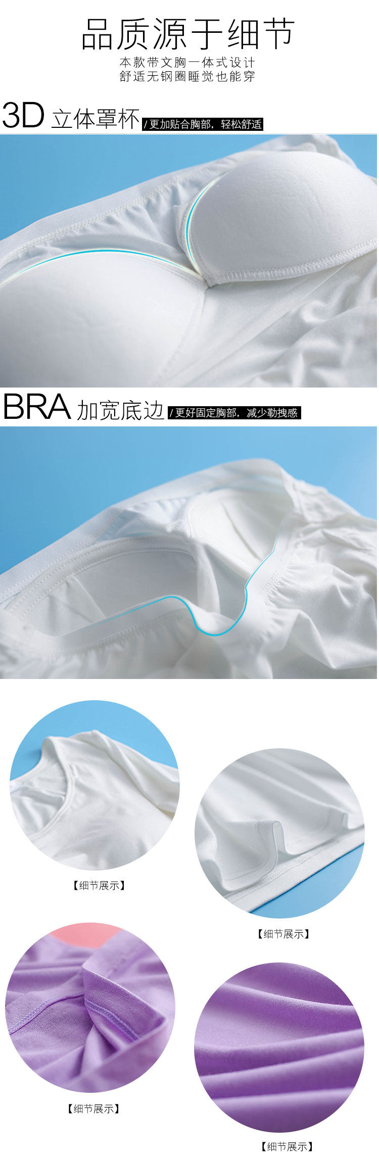 自帶胸墊,免穿文胸,方便無束縛。罩杯包布 舒適親膚