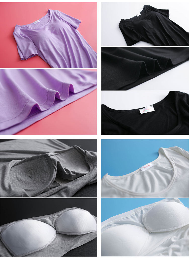 這款帶胸墊的T恤性價比真的很高,柔軟親膚彈性好,不褪色不起球,透氣涼爽,穿著方便,洗完澡不用穿內衣,往身上一穿就好了。好評不斷,好些買家都會回購。小羽家堅持用好料做好衣,用品質和質感來打動您,讓您的生活更舒適~