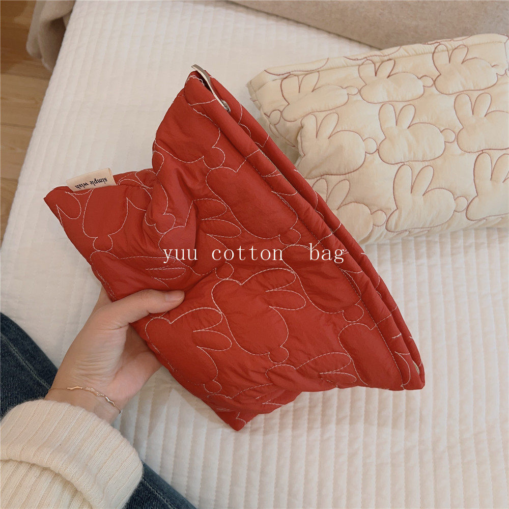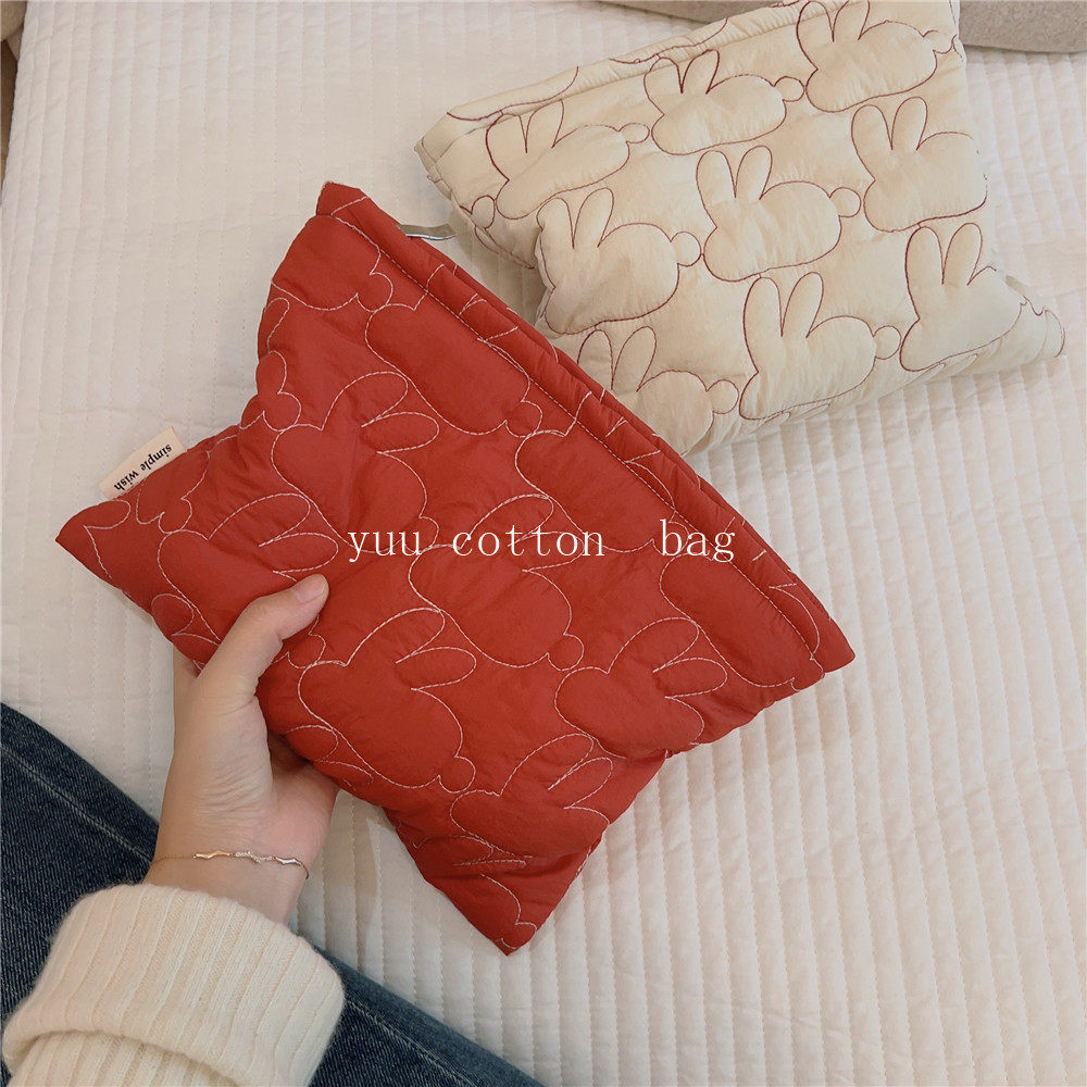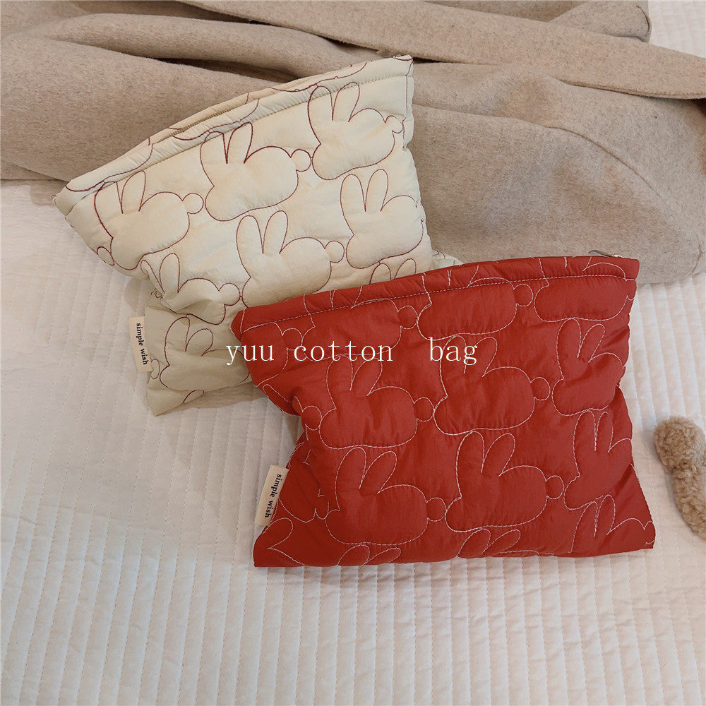 新年款可愛動物刺繡夾棉絎繡手包 手拿包 化妝包