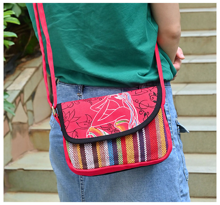 新款女小斜跨包民族風帆布包女斜跨小包單肩包加厚帆布小斜跨包