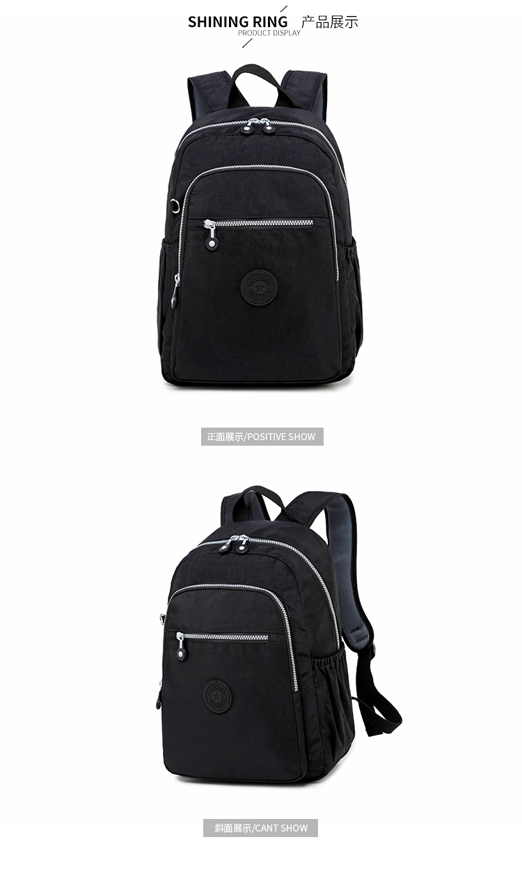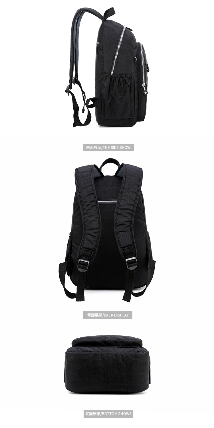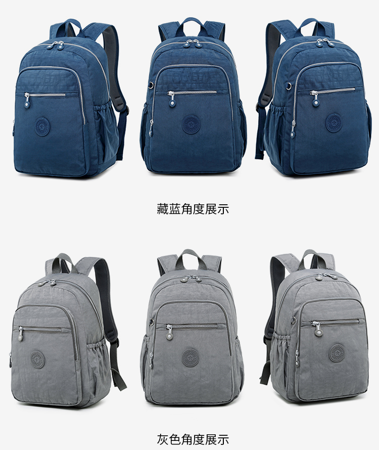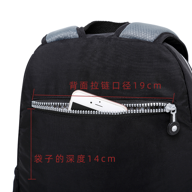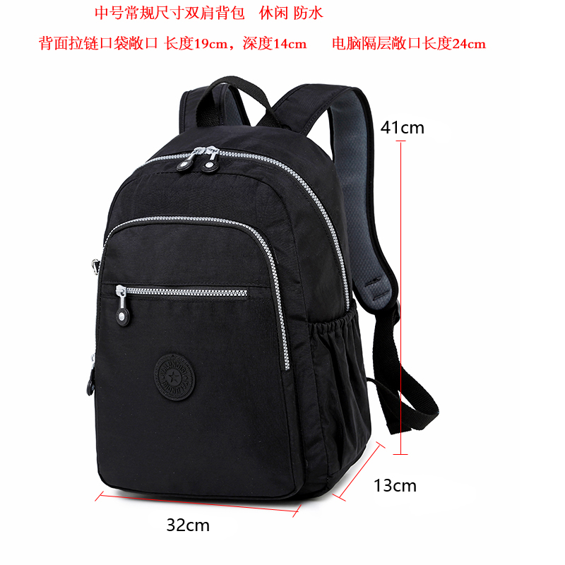 中型常規尺寸規格 雙肩背包,輕便防水布料,背面有拉鏈口袋,肩帶寬