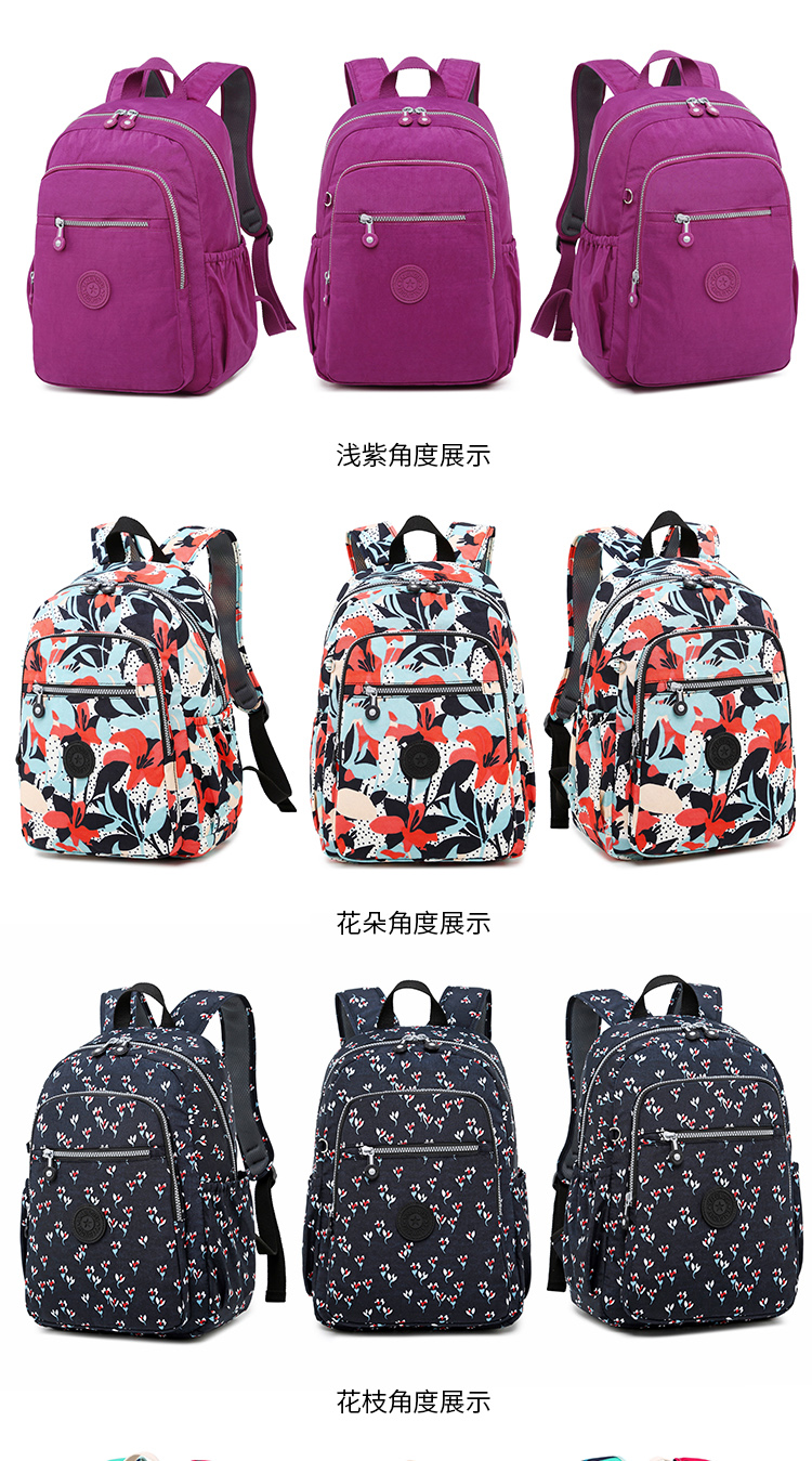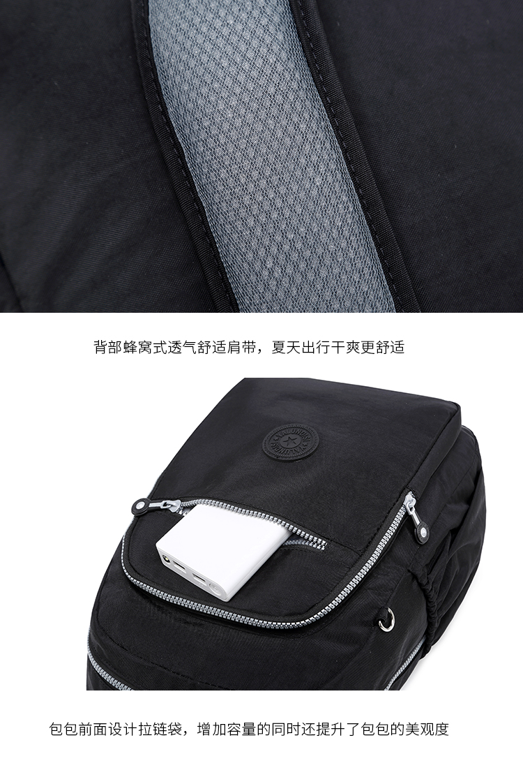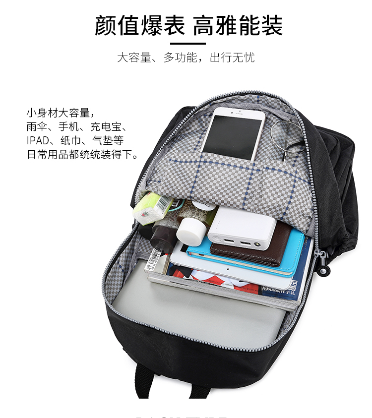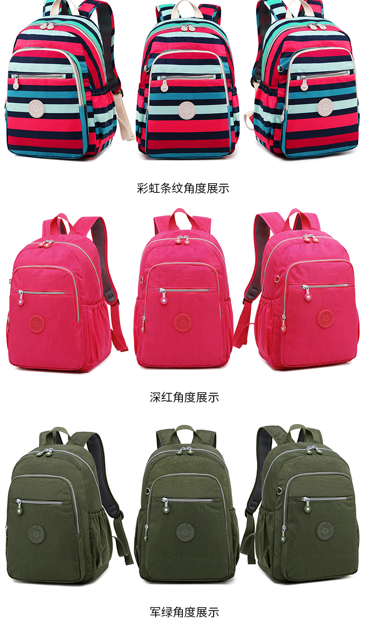 中型常規尺寸規格 雙肩背包,輕便防水布料,背面有拉鏈口袋,肩帶寬