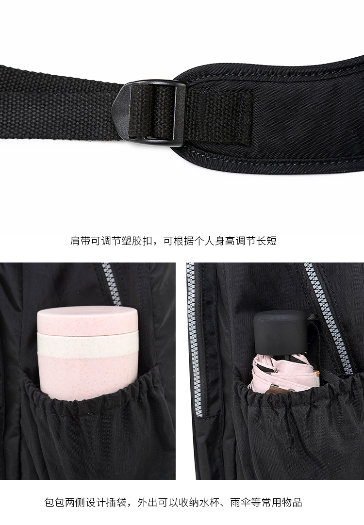 兩側:兩側松緊側袋裝555ML的塑料瓶子或者運動小水壺;