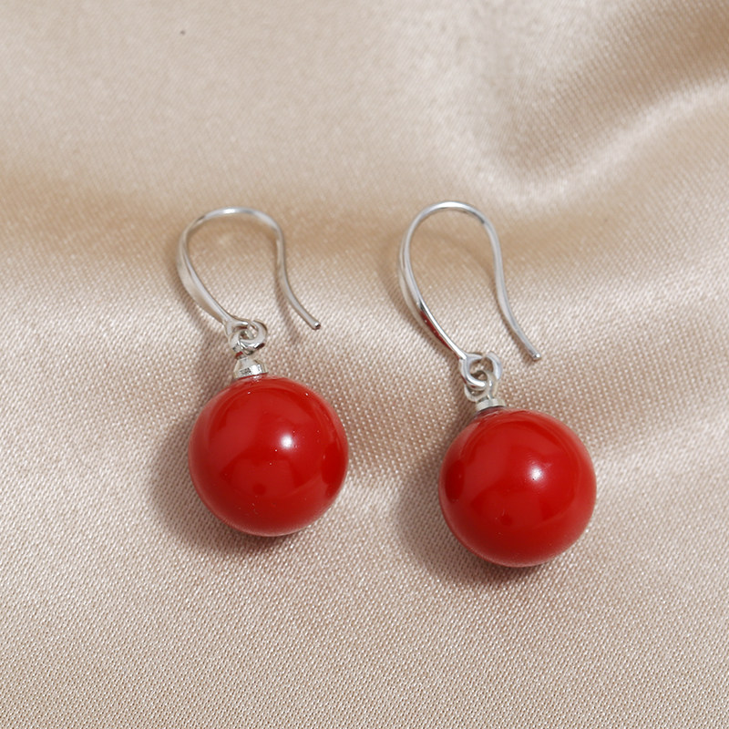 13-簡約圓貝珠(紅色耳勾):1.2x3.1cm