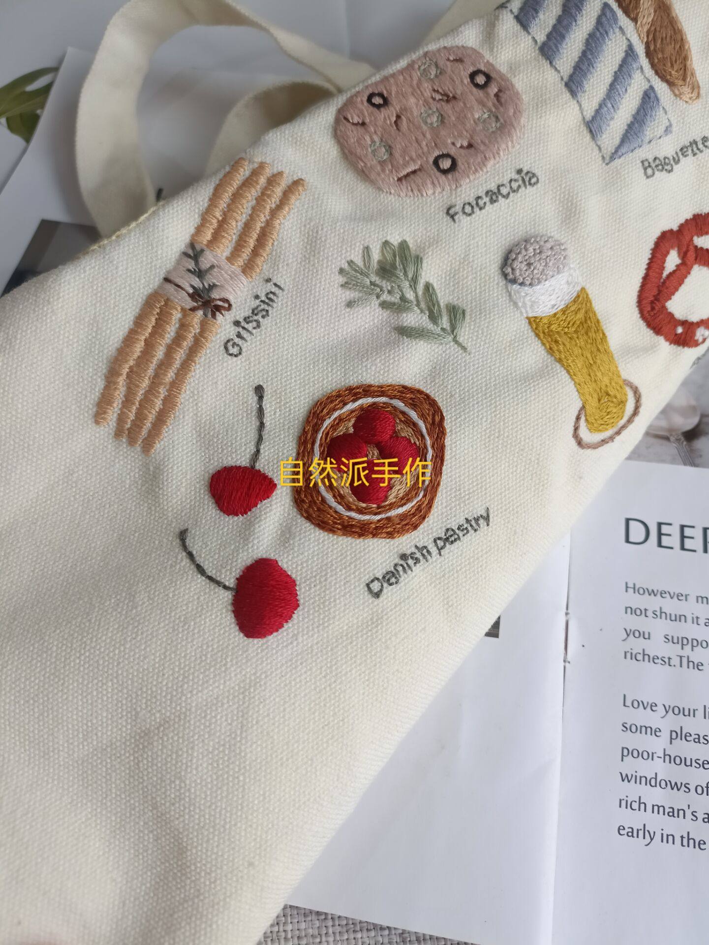 帆布材料包里面包體是做好的,上面的刺繡輪廓圖也是印好的,收到直接刺繡